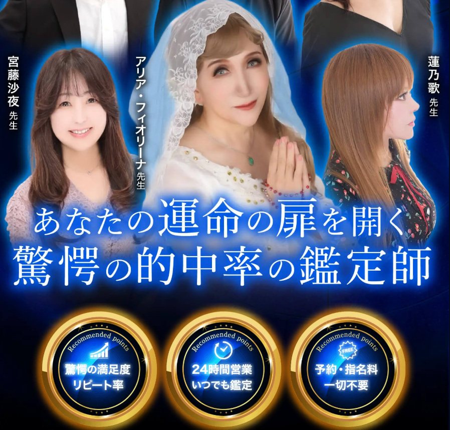 特におすすめなのは、ルーシー先生、美愛先生、天河りんご先生といった、リピーターが絶えない人気鑑定師たちです。